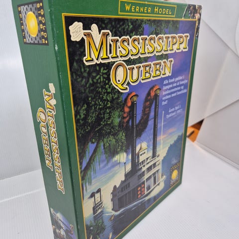 Goldsieber Mississippi Queen brætspil. Strategisk familiespil, hvor spillerne styrer hjuldamper-skibe ned ad Mississippi-floden. Spillet indeholder spilleplader med heksfelter, plastskibe i forskellige farver, terning, markører og øvrige spilledele. For 3-5 spillere, spilletid ca. 45 minutter. Velegnet som familiespil og til spil med venner.