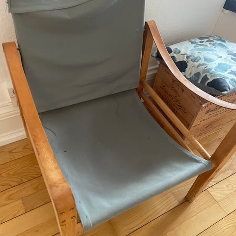 Søgeord: teak, loungestol, lænestol, retro stol, læderflet, læderremme, scandi stil.