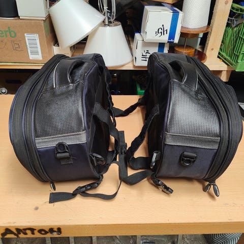 Meget pæne throw- over tasker til mc. Giver ekstra opbevaring på tur.