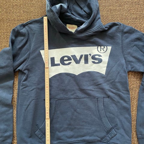 Sweatshirt, Hoddie, Levi’s, str. 140, Rigtig cool hoddie fra Levi’s, grå med “loddent” logo på brystet i mørkeblå-hvid-rød. Rigtig god stand, 8/10, ingen pletter, fra dyre- og røgfrit hjem. Størrelse siger “14” i nakken, men vores søn kunne passe den da han var 10-11 år. Kan sendes mod betaling.