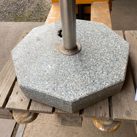 Fin og velholdt parasolfod med rullevogn som gør den meget nem at flytte rundt.