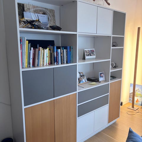 Reolen giver en flot “biblioteksvæg” og passer særligt godt ind i moderne eller skandinaviske hjem.