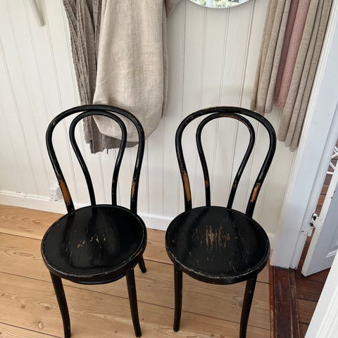 Disse wienerstole har et for mig ukendt label på undersiden, men ligner den helt klassiske cafestol model fra 1920erne.
