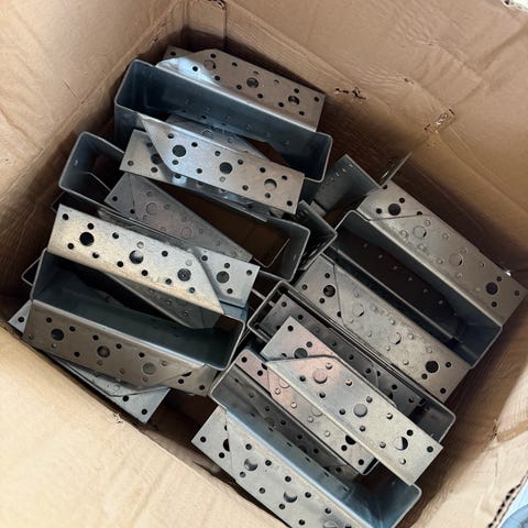 8 ubrugte strongtie bjælesko fra Simpson str 90/140 i overskud fra byggeri.