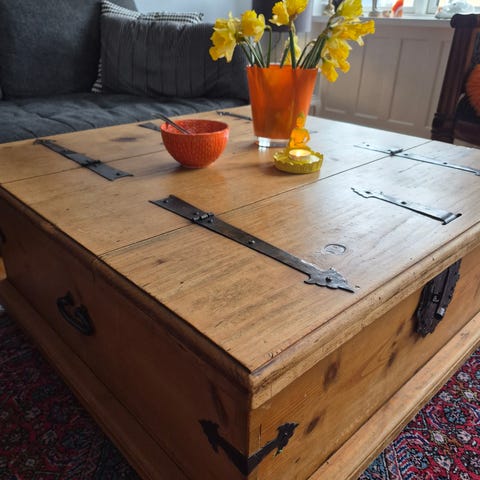 Kiste sofabord af fyrtræ