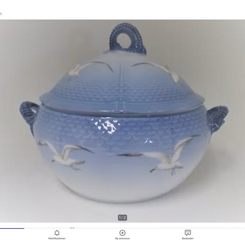 Smuk suppeterrin i porcelæn i blå-hvid dekoration. Terrinen har låg med hank samt to sidehanke. Klassisk mønster og rillet struktur på ydersiden. Egnet til servering af suppe eller andre varme retter ved borddækning