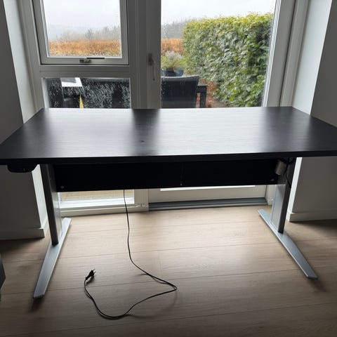 Magnet hæve sænkebord hjørneskrivebord elbetjent træ bordplade sort stel