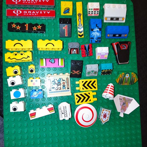 Blandet Lego fliser med print.