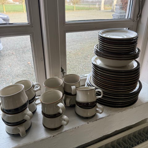 stel porcelæn sølvfarvet kant
