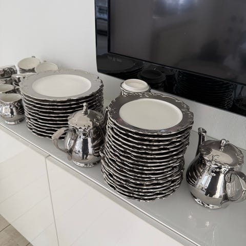 stel porcelæn hvid med brun kant