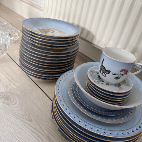 Bing & Grøndahl stel tallerkener og kopper gråt mønster