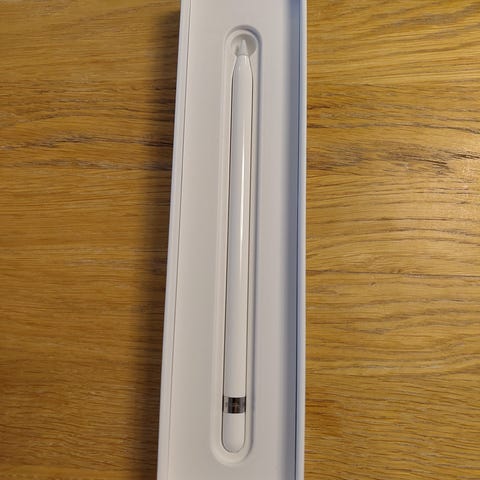 Apple Pencil stylus i hvid. Digital pen beregnet til brug med kompatible iPad-modeller. Leveres i original æske med indlæg. Egnet til tegning, notetagning og præcis navigation på skærmen. Farve: hvid.