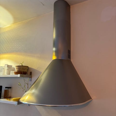 Emhætte i vægmodel udført i rustfrit stål. Modellen har pyramideformet skærm og lige skorstensdel. Emhætten er beregnet til montering over komfur eller gaskogeplade og er velegnet til udsugning af madlavningsos i køkkenet. Materialet i rustfrit stål gør den nem at rengøre og passer ind i de fleste køkkenindretninger.