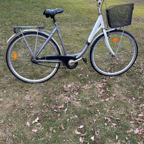 Kildemoes damecykel med 52 cm stel og 28" hjul. Cyklen er udført i sort stel med lav indstigning. Foran er der fastmonteret cykelkurv, og bagpå er der bagagebærer med mulighed for montering af tasker eller kurv. Cyklen har kædeskærm og skærme for og bag. Velegnet til kvinde/ voksen rytter, der ønsker en klassisk by- og hverdagscykel med oprejst siddestilling.