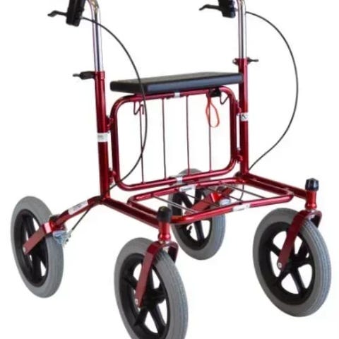 Som standard er rollatoren udstyret med store luftfyldte hjul, som gør at den er nem at køre rundt med på både brosten, skovbund, ujævnheder, sand og græs.