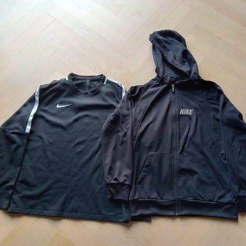 Jakken er rød med sort lynlås og sort Nike-logo på brystet. Modellen har hætte, gennemgående lynlås foran samt lynlåslomme på ærmet. Egnet som let jakke eller trøje til hverdag og sport for børn omkring størrelse 128- 145 cm ish