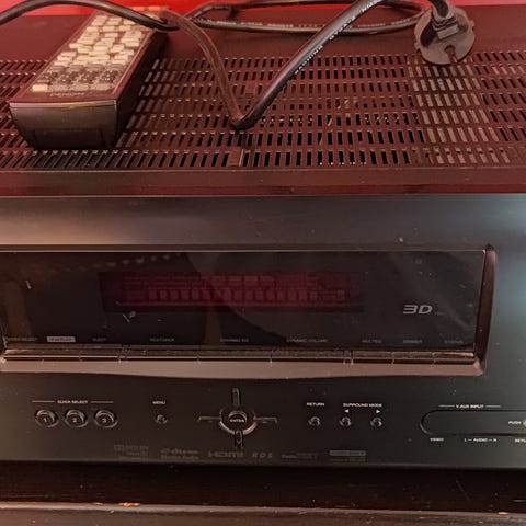 Ældre men super godt denon avr-x1100w anlæg, med fire små højtalere som på sidste billede...