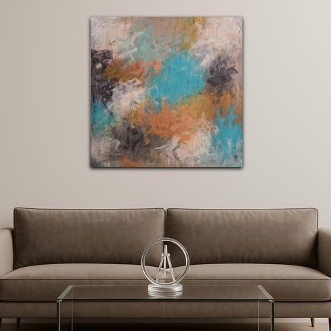 80×80×2 cm med sortmalede kanter. Signeret på bagsiden. Kan sende maleriet med Postnord eller Gls for 95 kr. Eller kan hentes i Vejle.