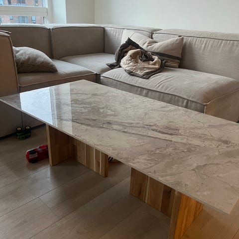 Marmorbord sofabord sort, hvid og mørkegrøn med bordeau røde åretegning