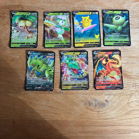 Jeg sælger en samling på ca. 20 Pokémon V, GX og EX kort.