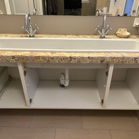 Klassisk skolevask og armatur, som er svært at finde. Fylder desværre en tand for meget på vores lille gæstetoilet, og kræver en kærlig hånd.