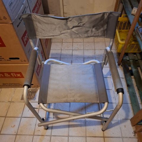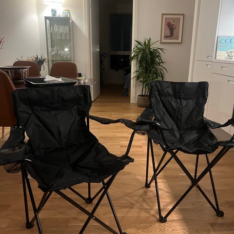 Campingstol sammenklappelig i sort stof med armlæn. Stolen har krydsstel og kan foldes sammen, så den fylder minimalt under opbevaring og transport. Leveres i bæretaske, som gør den egnet til brug ved camping, strand, festivaler eller andre udendørs aktiviteter.