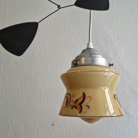 Loftlampe med glas-skærm og kædeophæng