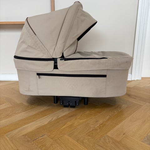Har aldrig stået på jorden udendørs da den primært har været brugt inde og i barnevogn - derfor yderst velholdt uden brugsspor.
