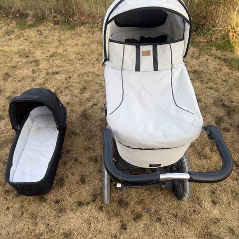 Emmaljunga liggedel barnevogn grå