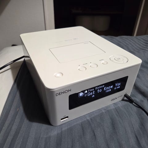 Sælger denne velholdte Denon RCD-N7/N8 netværks-receiver. Det er en kompakt alt-i-én løsning med fremragende lydkvalitet. Perfekt til stuen, kontoret eller soveværelset.