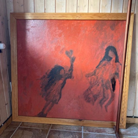 2 malerier m ramme i flotte farver gives væk og kan afhentes i Ebdrup v Kolind