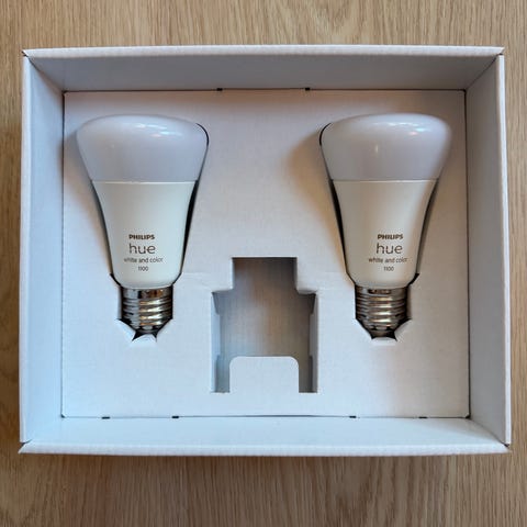 Philips Hue White Ambiance E14 Filament Candle 2-Pack sælges. En uåbnet pakke samt to pærer uden orginal emballage sælges