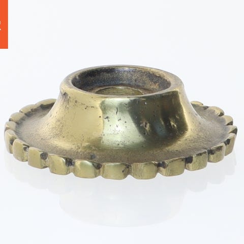 En lille cylinderlås med tilhørende nøgle. Låsen har en diameter på 3 cm og en skinnende metalfinish. Cylinderlåsen er beregnet til sikkerhed og anvendes ofte i møbler eller skabe.