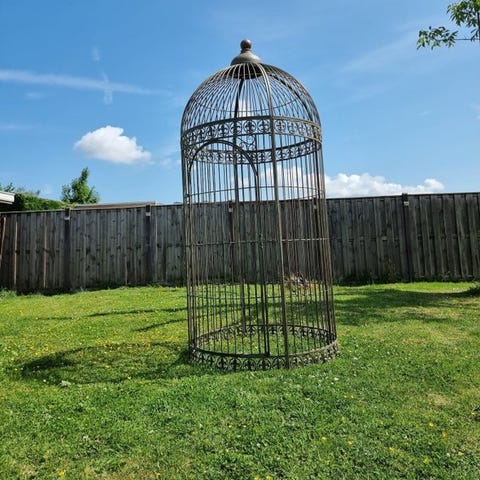 Træd ind i den fortryllende verden af klassisk elegance med denne smukke store dekorative jernfuglekøje i victoriansk stil. Med sit graciøse design bringer denne fuglekøje et strejf af charme og finesse ind i ethvert rum, uanset om det er indendørs eller udendørs.