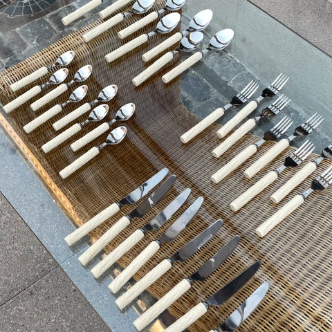 Vintage IKEA-bestikservice karakteriseret ved et elegant snit af design, rent og enkelt, typisk for den bedste skandinaviske tradition.