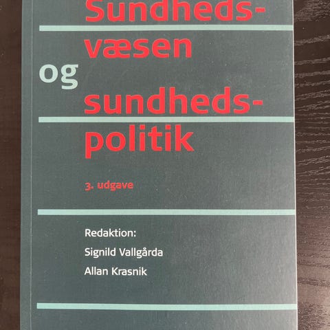 Munksgaard "Sundhedsvæsen og sundhedspolitik" lærebog inden for medicin og sundhed. Bogen gennemgår opbygning, organisering og udvikling af det danske sundhedsvæsen samt centrale områder inden for sundhedspolitik. Velegnet som faglitteratur til studerende og fagpersoner, der arbejder med sundhedsvæsen, sundhedsfag, samfundsvidenskab eller beslægtede områder. ISBN: 978-87-628-0928-4.