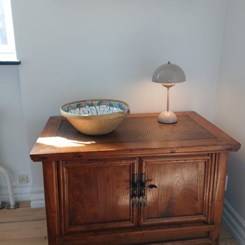 Men stadigvæk et smukt anderledes lille skab med opbevaring, som sagtens kan bruges og pynte.