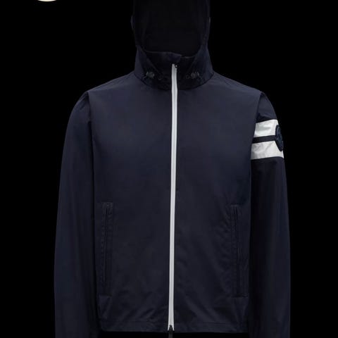 Jakken er fremstillet i polyamid og er blå. Den har hætte, gennemgående lynlås foran samt lommer med knaplukning. Moncler-logo ses på ærmet. Velegnet som let yderjakke i overgangsvejr.