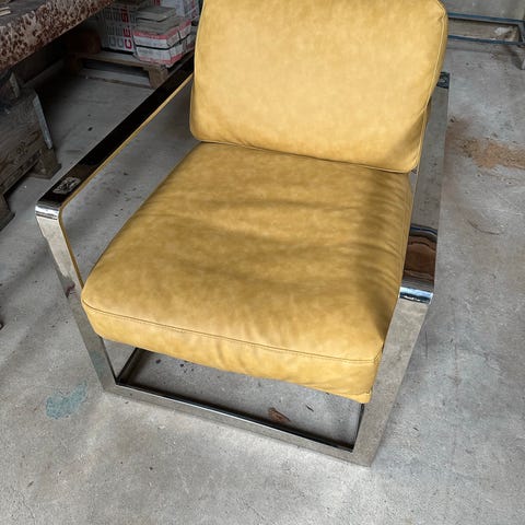 Lænestol I en rigtig fin varm farve med stålben. Man sidder virkelig godt i stolen. Læder har ingen ridser eller brugsspor. Nypris Ca kr 8000. Sælges for en slægtning så kom gerne med et bud.