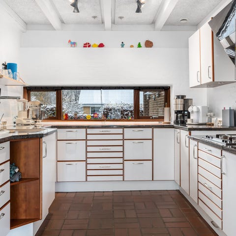 Køkkenet har god opbevaringsplads og fungerer fint. Perfekt til gør-det-selv projekter, udlejning eller sommerhus.