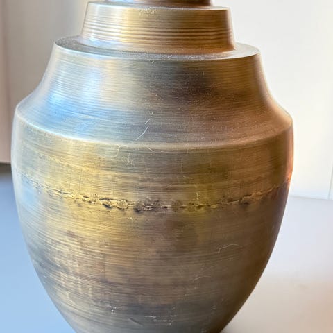 Vasen er 29 cm høj og har en diameter på det bredeste sted på ca. 27 cm. Der er brugsspor, bl.a et lysere mærke. Se foto