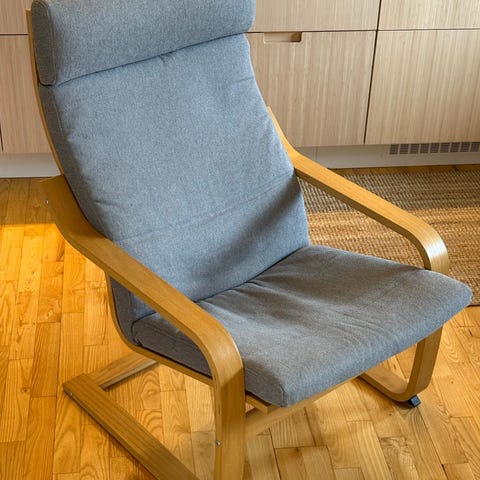 Pæn velholdt lænestol med sort hynde. NB: sendes ikke.