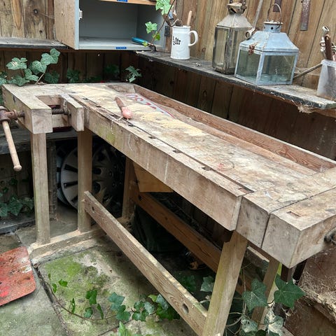 Høvlebænk velegnet som arbejdsbænk i værksted eller hobbyrum. Bænken er omkring 2 meter lang. Skal hentes denne uge.