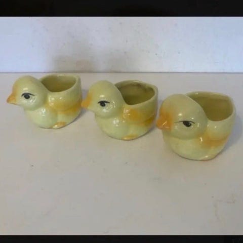 Gl påskekylling krukke, Ældre gul påskekylling i Keramik