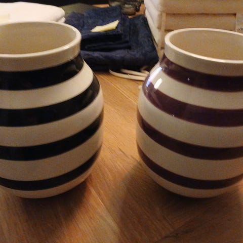 Sælger denne elegante gulvvase fra Kähler i porcelæn med et klassisk sort/hvid stribet design fra Kählers Omaggio-serie.