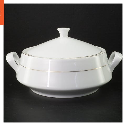 Suppeterrin hvid porcelæn serveringssæt med blomsterdekoration