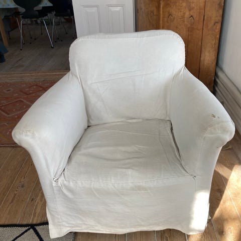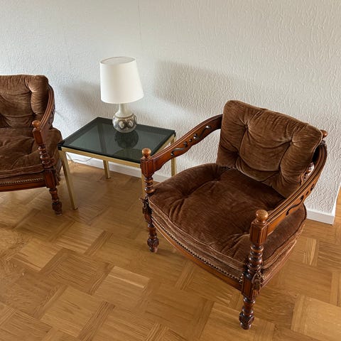 Men Smuk ældre vintage lænestol inkl. hynder. Ikke brugt meget de sidste 10 år - mest stået som pynt.