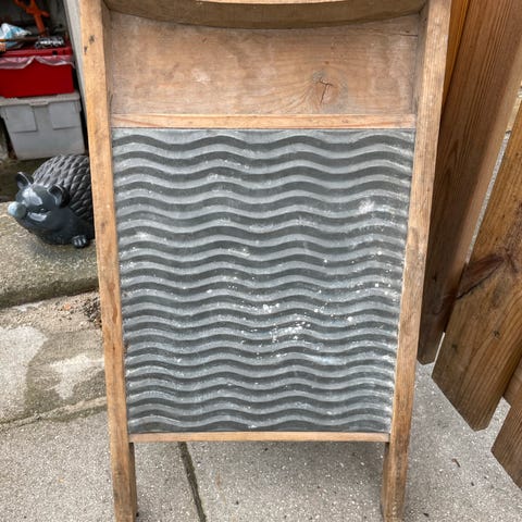 Vaskebrædt fra 1940. Med glasplade, hvorpå tøjet vaskes.