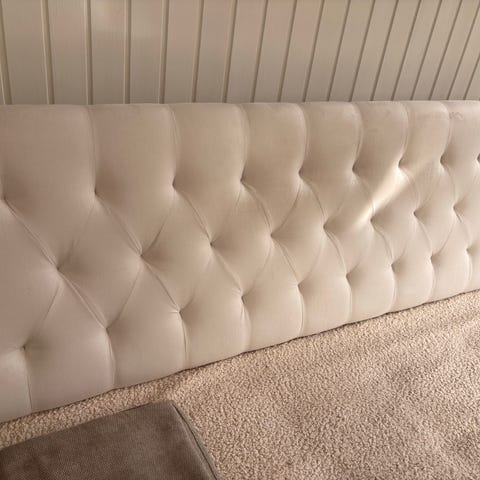 Flotte sengegavle i bredde 120 cm. i gråt hør lignende stof.