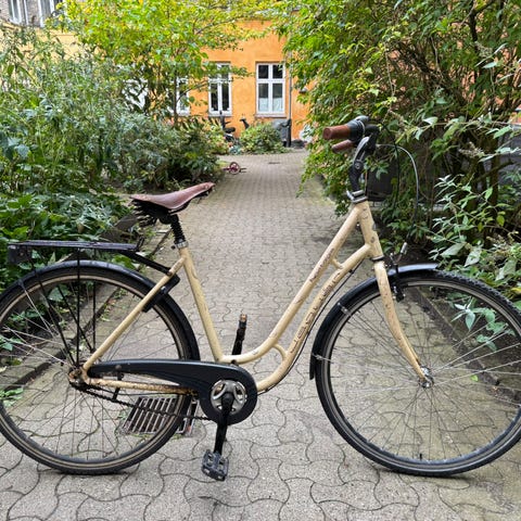 Pedalbremse bag , ringeklokke. Støtteben aluminium justerbar, håndbremse,fodbremse. Ingen fejl næsten ligesom ny efter service. Det mangler ingenting